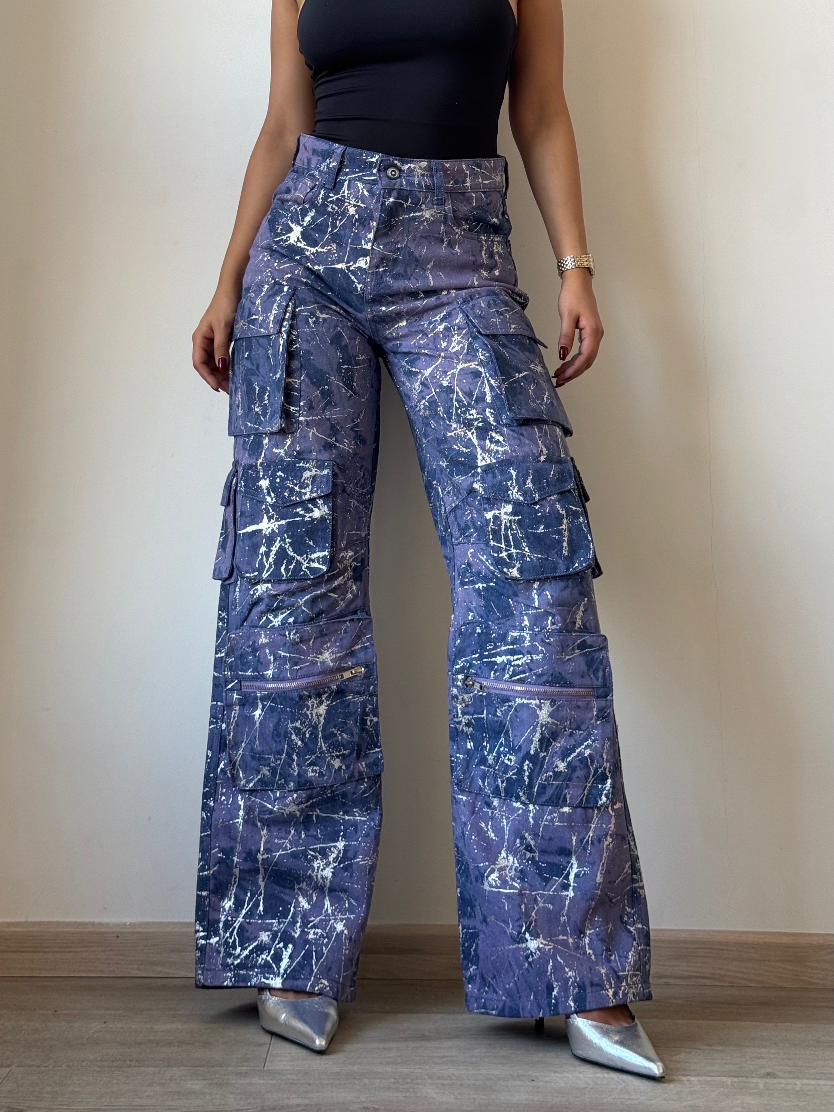 Indulge in luxury with our Milan High Street Foil Cargo Denim. These cargo jeans feature a unique foil design, perfect for a night out on the town. Made with high-quality denim, they offer both style and comfort. Upgrade your wardrobe with these exclusive jeans.